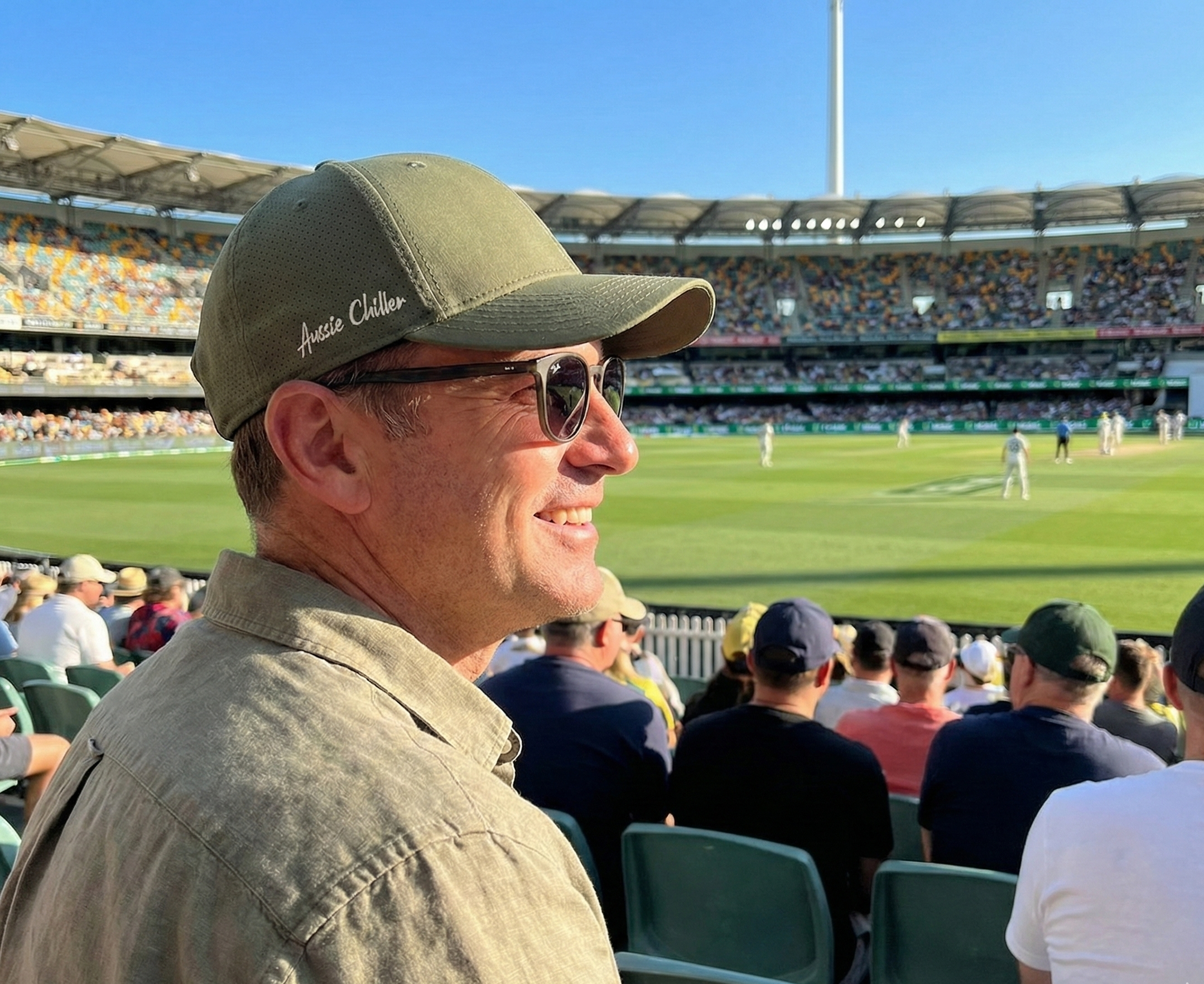 I am extremely happy with my new Aussie chiller cap. Love the colour. Love the design. Great fit and excellent material. I am bored so I wear a lot of caps As in photo. The Aussie chiller cap just became my new favourite