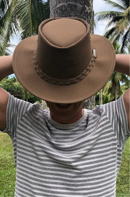 "The best hat I’ve ever owned! I travel a lot and was looking for a versatile packable hat for warmer weather. I explored the Aussie Chiller site and ordered the perforated Bushie based on the reviews. I’m so happy I did. I live in the northeast US and recently traveled to Key West Florida. The Bushie came out of my suitcase unscathed. Just popped it back in shape. I wore it all the time from the beach, pool, soaked it and it kept me cool in very warm weather. I’m a musician and wore it to perform. I received so many compliments. I’m going to order a solid Bushie plus for the cooler months. Thank you Aussie Chiller for a wonderful well made hat!"John S.