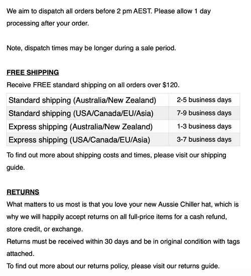 The care guide underneath each product will provide tips on how to care for your new Aussie Chiller hat.