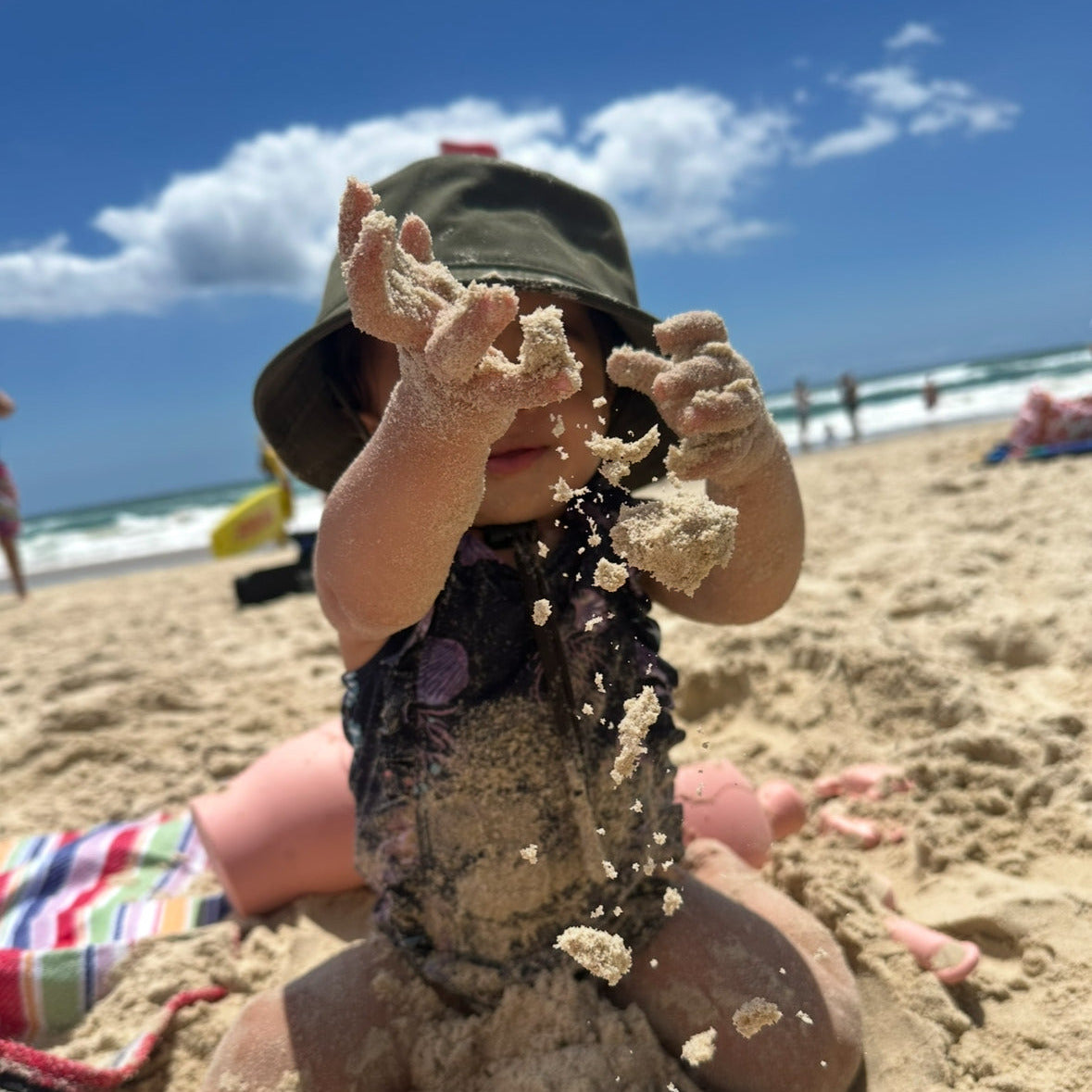My daughter loves wearing the bucket hat in the water.
